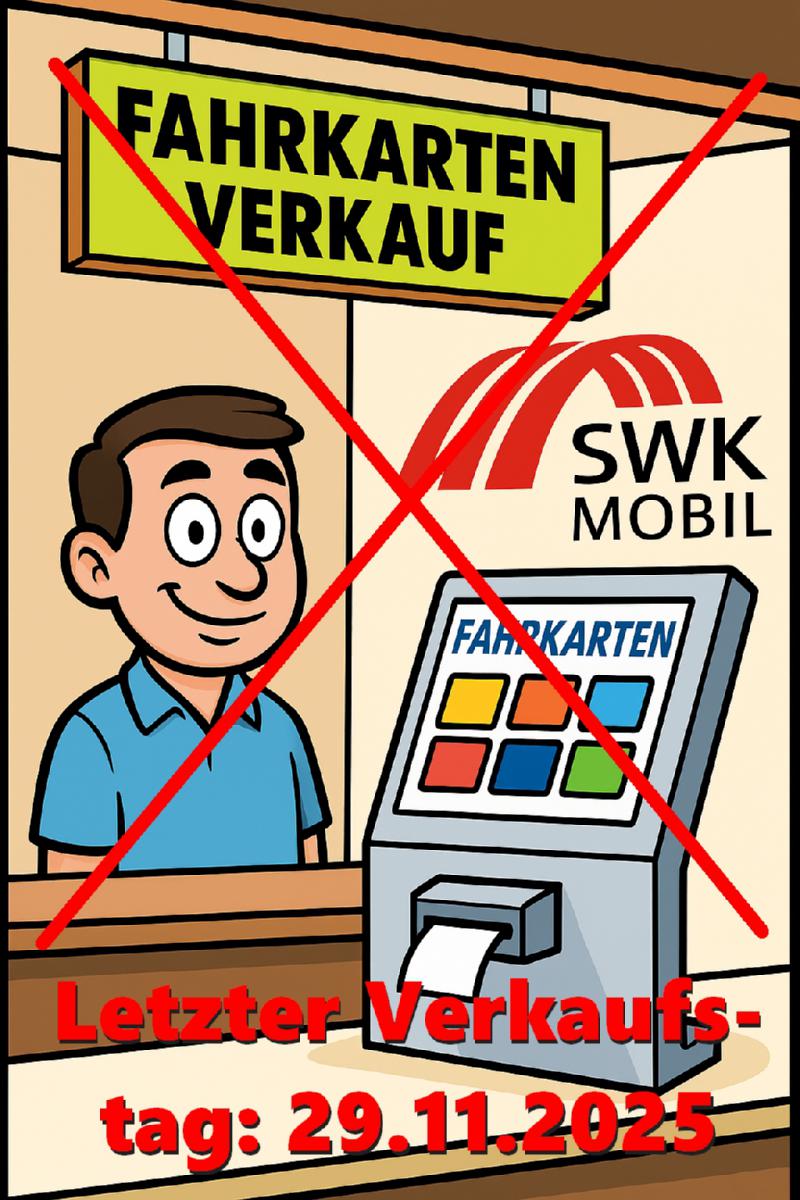 Sie erhalten bei uns folgende Fahrkarten aus unserem SWK-eigenen Automat: - EinzelTicket - 4er-Ticket - 24-StundenTicket - SozialTicket - Ticket2000 und Ticket2000 9 Uhr